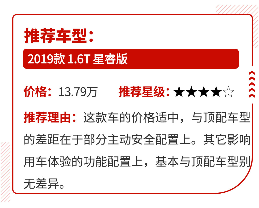 即使是作为2019款 1.6T 星睿版,与同级产品相比,高规格的配置足以符合年轻车主的日常出行需求。