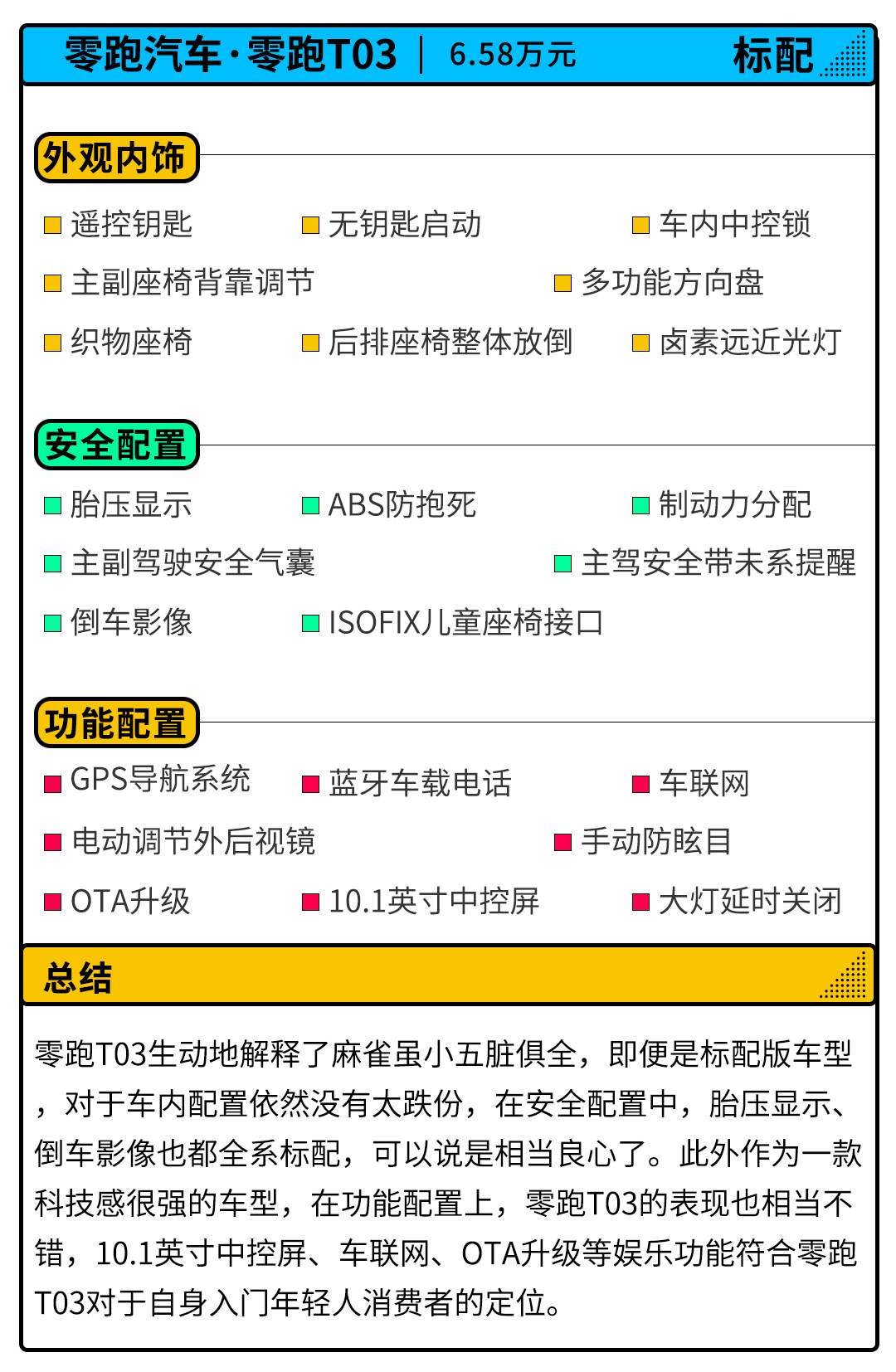 先上结论:建议选最高配,反正价格也才7.58万元,那么为啥不选最高配呢?零跑T03分为三个版本,最低和最高配差价不过1万块,其中的差价咬咬牙就能拿得出来啦。