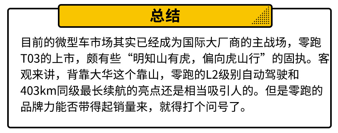 相信零跑对于第二台车型的态度是极为审慎的,无论从哪个方面来看,零跑T03都显得正常太多。
