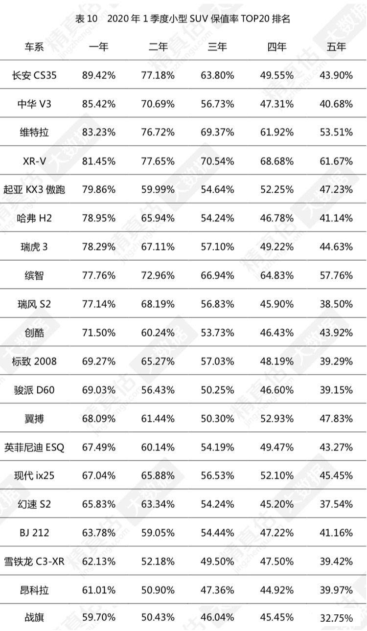从数据看,虽然自主品牌阵营的长安CS35、中华V3、哈弗H2等车型第一年保值率位名列前茅,但随着车龄时间加长,保值率出现大幅度的下滑,而本身保值率并不太高的XR-V、铃木维特拉等合资车型开始领跑。