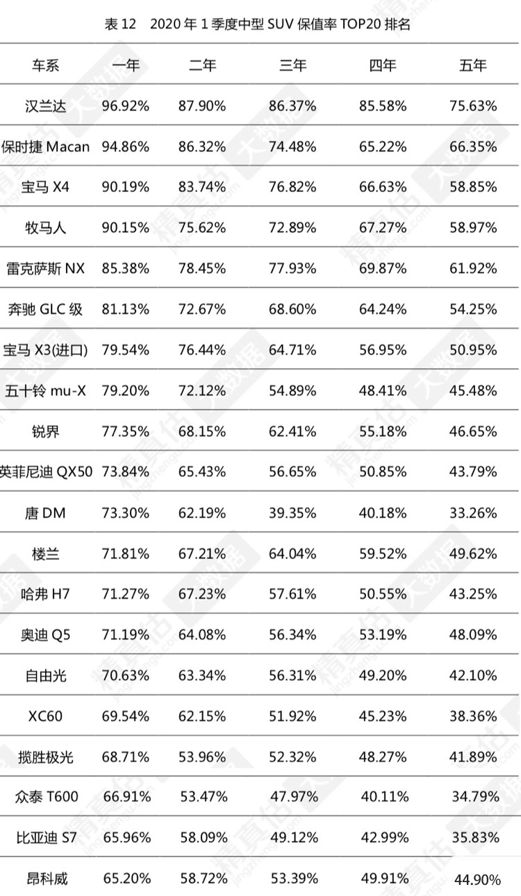 日前,中国汽车流通协会和精真估机构发布了2020年一季度各级SUV车型保值率排行榜,其中根据新车三到五年过后的保值率数据,日系车型当中的丰田、本田双双登上榜首。