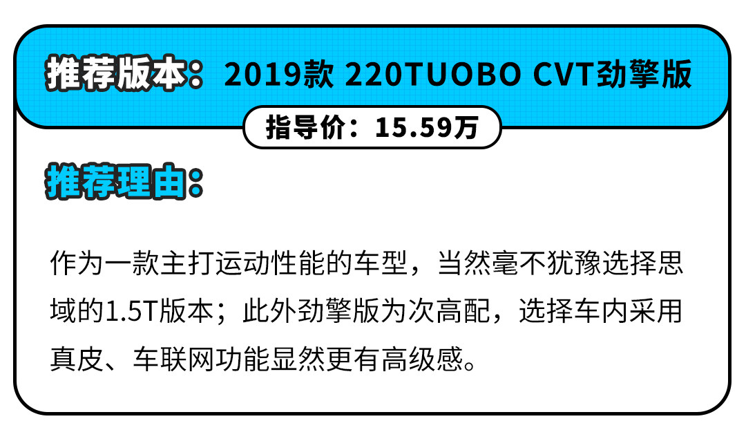 买买君推荐购买1.5T次高配版本,原因有两个:一是主打性能的车型,显然1.5T版本才能带来符合定位的操控体验,1.0T的最大马力只有125Ps,难以征服消费者运动的心;二是次高配和顶配才有真皮座椅以及车联网功能,相信选择思域车型的更多的是有追求的年轻人,所以更显档次的真皮座椅显然更加合适。