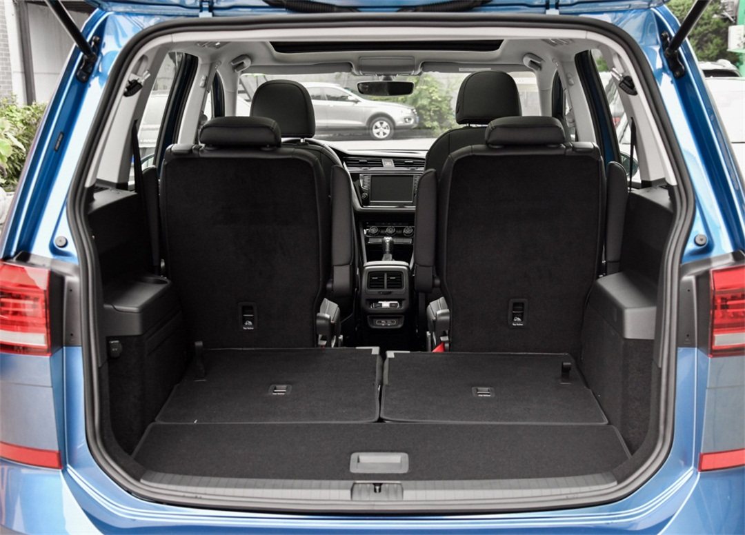 首先我们能够从外观上看到,途安L采用了方正的设计,虽然看上去设计感不强,但这一切都是为了实用性所做出的让步,其优势体现在车厢内部,内部空间不仅宽大,还规整,提供了一个很好的头部空间的,以及一个超强的装载能力,在后排座椅全部放到的情况下,途安L的后尾箱容积达到1857L。