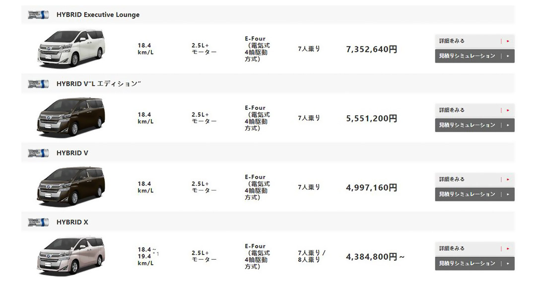 2019年后,丰田埃尔法的姊妹车型Vellfire(威尔法)混动版以纯进口的方式引入国内,并且通过一汽丰田渠道经销商进行销售。