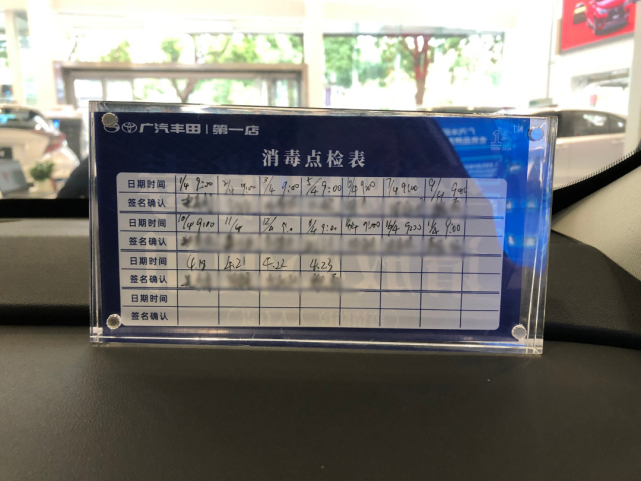 同时,我还发现了车内一块“已消毒”的牌子,并且在背面有每天的消毒时间以及负责人,这样的操作真的是太贴心,特殊时期还是安全最重要。