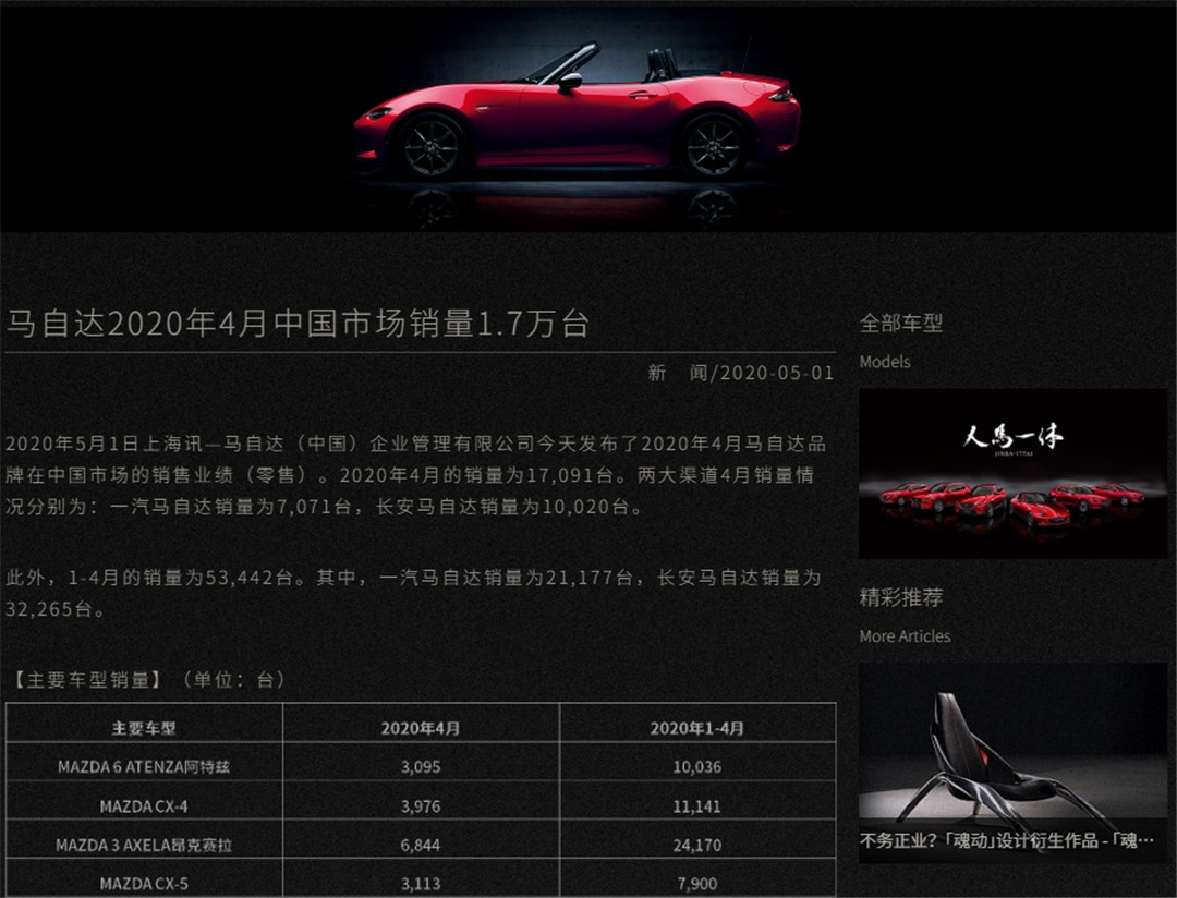 甚至在4月份,汽车市场整体萎缩的大环境下,马自达的销量居然达到了1.7万辆之多,同比去年4月上升了1%。而其中马自达3昂克赛拉的4月销量更是高达6844辆,是马自达在华产品线最畅销的一款车型。