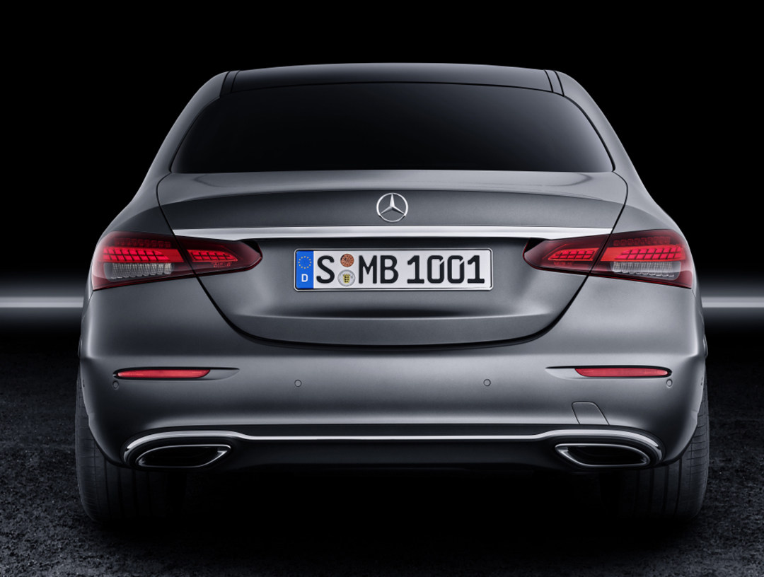 而在车尾部分,新车排气尾嘴造型也和中期改款E级相似,我们也再次见到了倒三角形LED尾灯,不过与中期改款E级相比,这辆新车的尾灯造型线条更加锐利。