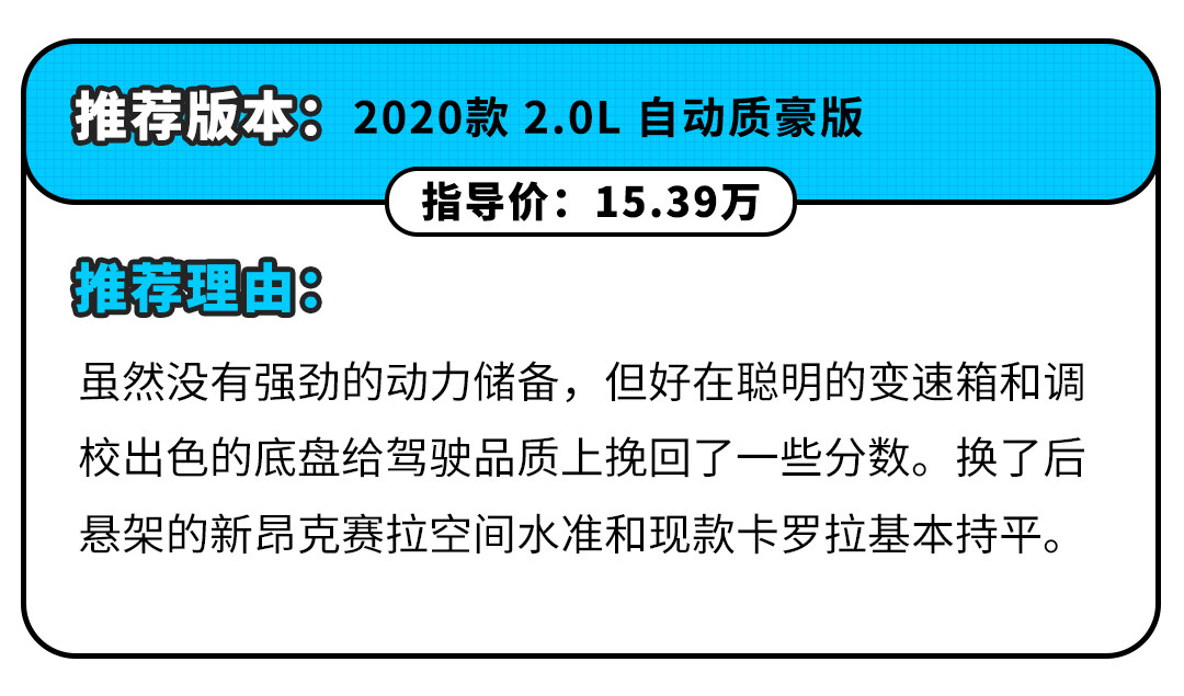 但在涡轮机的时代,自吸发动机的动力爆发和提速表现是永远的痛,但我们总是以加速很平顺很线性安慰自己,好在2.0L发动机的动力储备也能够满足昂克赛拉的动力需求。国外虽然提供2.5L版本,但不引进也是情理之中,本就比同级别车型贵半级的昂克赛拉,卖到20万又有多少人愿意买单呀?