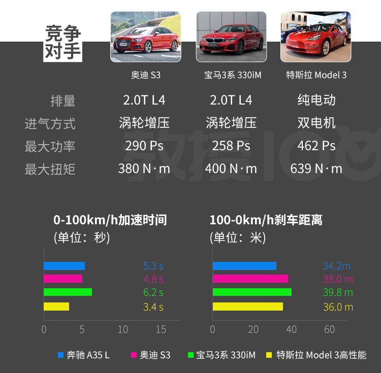书归正传,奔驰A35 L和A35需要与即将上市的奔驰A45 S形成差异化,维护高阶产品的尊严。绝不能像奥迪S3那样,在不改动硬件的情况下,刷个一阶ECU就能以下犯上,明目张胆地动了奥迪RS3的奶酪。