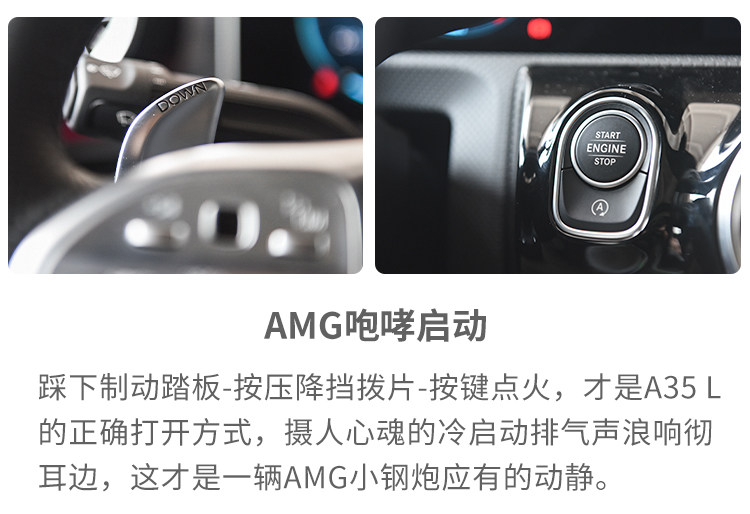 鲜为人知的是,A35 L是目前国内在售AMG中,唯一自带弹射程序的非“一人一机”车型。切换至“S+”模式并关掉ESP,挂入D挡,刹车、油门同时到底直至引擎转数突破四千时迅速松开刹车,接下来只需扶稳方向盘,并聆听女副驾尖叫声与高亢排气声浪的合奏曲。以上种种,只为一个完美起步。