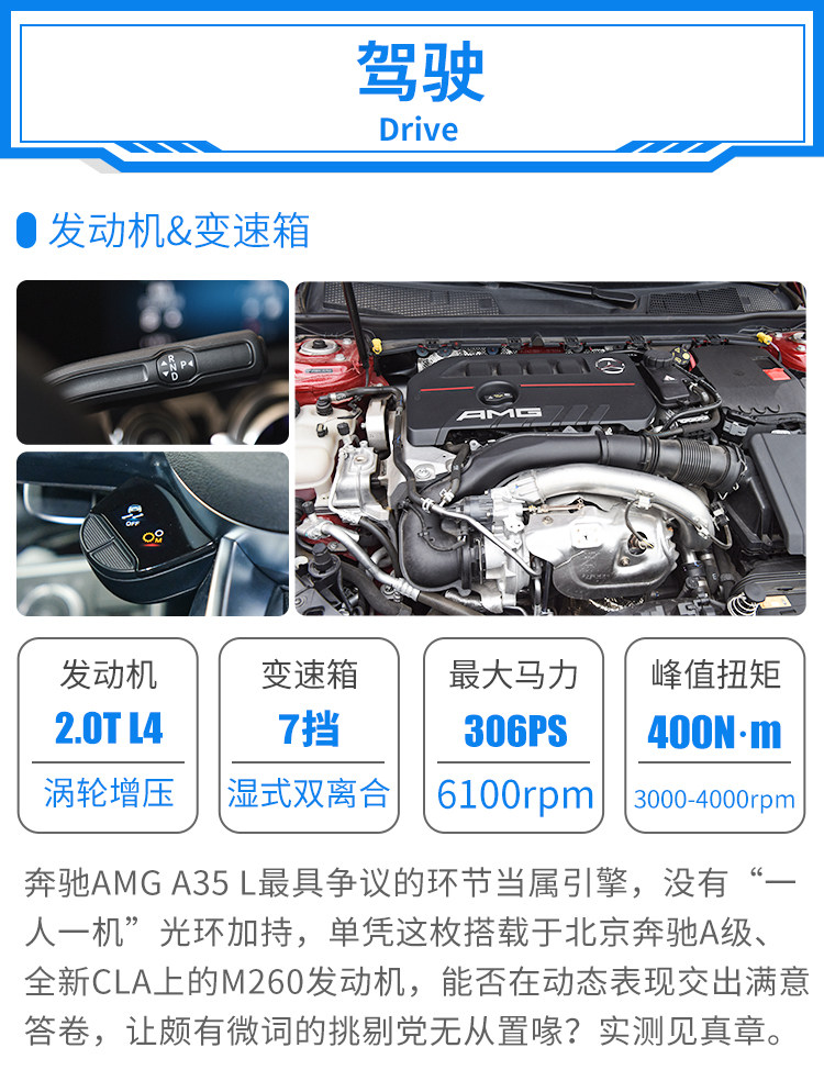 出于上述考虑,北京奔驰A35 L和奔驰A35选用M260 2.0T发动机并无不妥,我相信这也是产品经理和AMG工程师团队在深思熟虑后作出的理智决定。