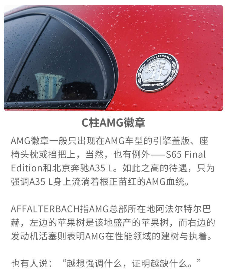 正如好的东西不能拥有太多,不然体现不出其价值。有时,不完美的口碑传播要比面面俱到来得有效,好比最便宜AMG——北京奔驰AMG A35 L。