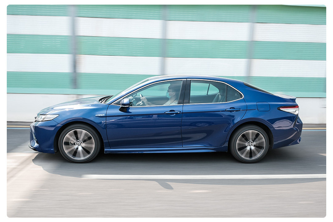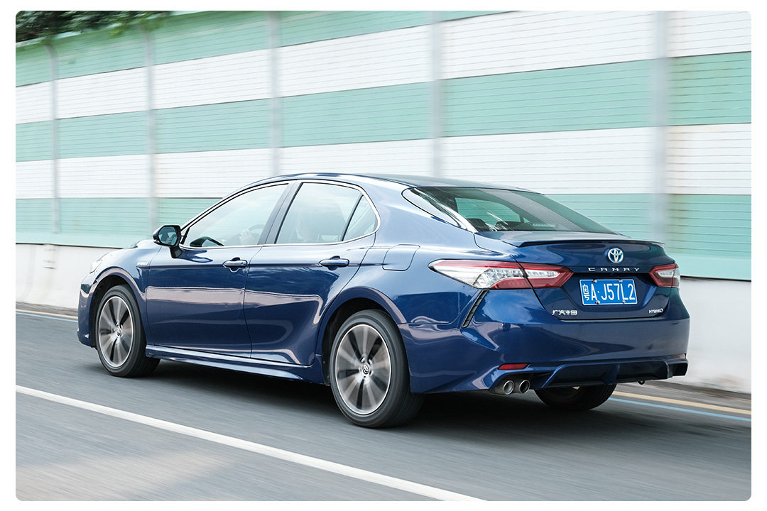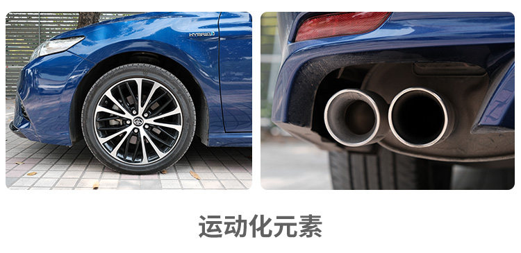 本次的主角凯美瑞2.5HS在细节处也是彰显其身份,比如车身、车尾的“HYBRID”字样就表明它是双擎版车型。轮毂造型、单边双出排气突出它的运动风格,双擎与运动的融合可谓是恰到好处。