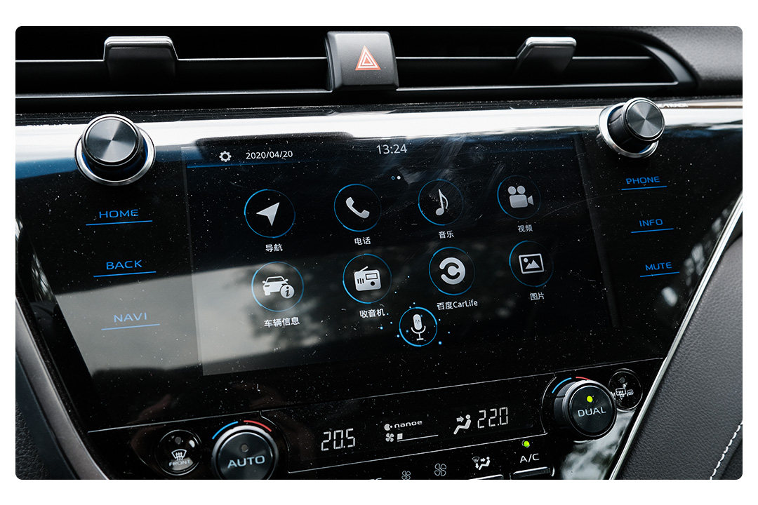 与其他车型不同,凯美瑞的中控屏为不规则造型,触屏与实体键相结合,这种设计存在着一定的争议,喜不喜欢就要看个人了。
