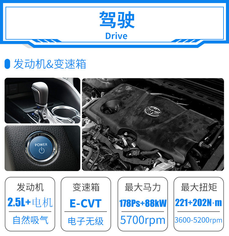 预算充足的建议买2.5L发动机版本,动力会充足一些。双擎版有了电池电机的存在,整车热效率高达41%,燃油经济性突出,而且电机也弥补了自吸发动机动力储备不足的缺点,驾驶起来更有快感。