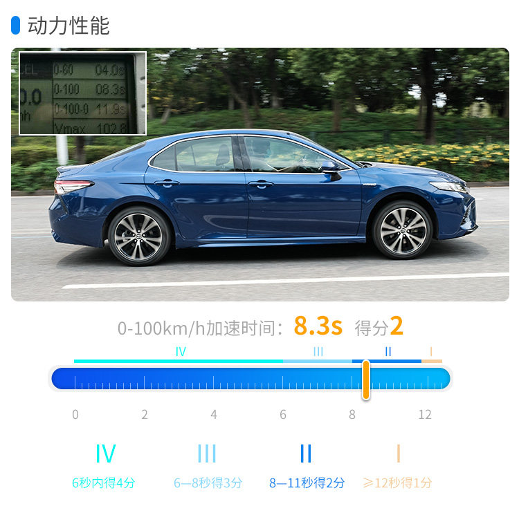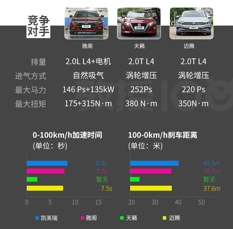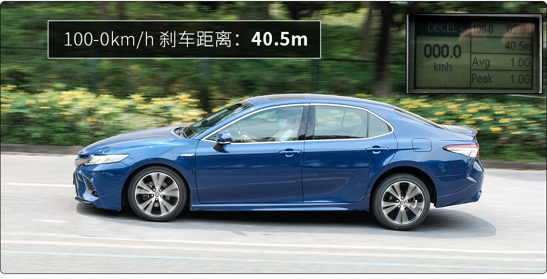 凯美瑞双擎的加速性能和制动性能如大家所见,毕竟是自吸发动机,8.3秒零百加速时间也在意料之中,跟迈腾的2.0T相比差别也不是很大。刹车给人的感觉很稳,通过图片大家也可以看得出车身姿态很平稳,最终40.5m的刹车成绩在理性的范围内。