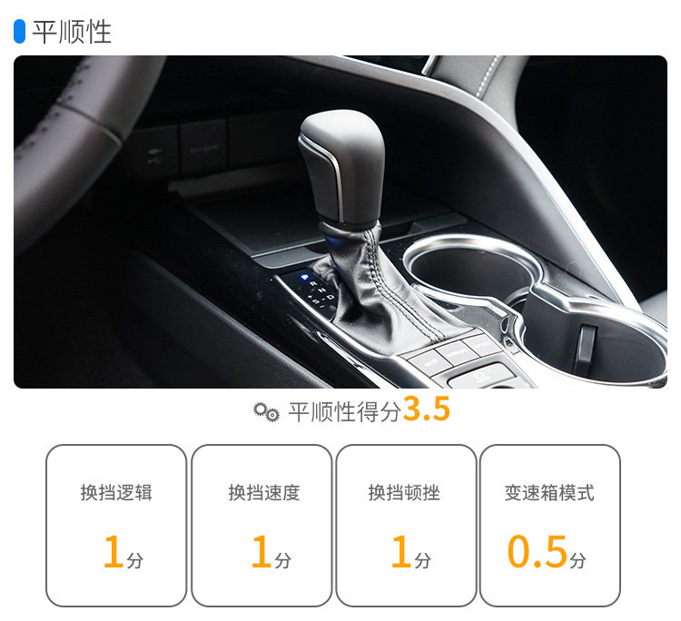 小结:凯美瑞的空间满足绝大多数人的需求,乘坐、储物、后备厢的表现都恰到好处,加上比较柔软的座椅表现,家用氛围浓厚。