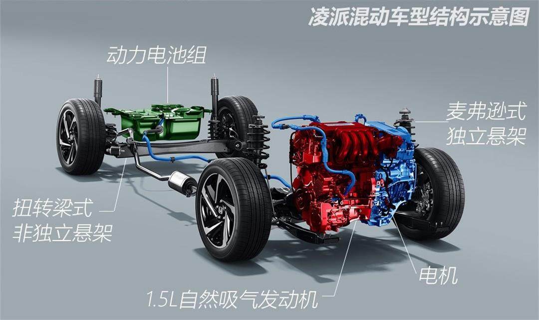 为了适配凌派更低定位的产品,与之匹配的并非雅阁那套2.0L混动系统,而是采用了一款带1.5L发动机的i-MMD混合动力系统。而这台1.5L发动机其实也并不陌生,就是早前在飞度和缤智上服役多年的产品,但针对混合动力系统加入了EGR废气循环和阿特金森循环等技术优化,并且动力参数也做出了一定调整,但这款发动机最令人放心的还是其较强的稳定性。而将扁平化处理的电池组布置在后悬架上,既保证了后备箱置物能力,也不会影响到后排乘客的乘坐空间。