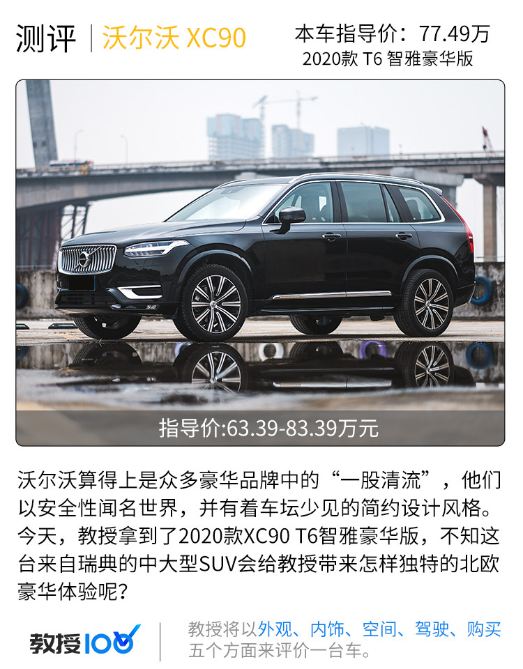 教授总结:从简约的设计,到灵活实用的空间设计,再到动感不足但不失轻快舒适的驾驶感受;XC90并不是一款拥有“张扬外观、奢华内饰和澎湃动力”的传统豪华SUV,但它确实能够带来比竞争对手更加贴近生活、安全可靠且轻松舒适的日常使用体验;也许这就是沃尔沃“北欧豪华”的体现吧。
