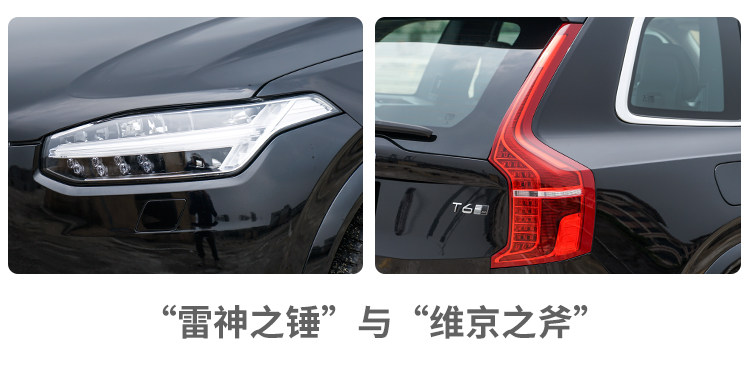 除了简约且平直的车身线条之外,被官方形容为“雷神之锤”和“维京之斧”的前后大灯设计也极具辨识度,通过这两种特色鲜明的大灯设计,你可以在街上轻松认出XC90或其他沃尔沃品牌车型的身份。