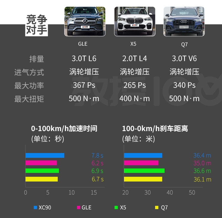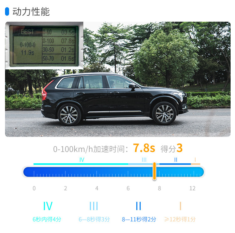 XC90并不是一款以运动性著称的车型,2.0L双增压发动机在规格上似乎“配不上”它的豪华身份,但是它的实际动力表现却不会让人失望;最高320匹马力和400牛·米扭矩已超过同级对手同规格发动机,而实际测试中,0-100km/h 7.8s的湿地加速成绩已经令人满意。