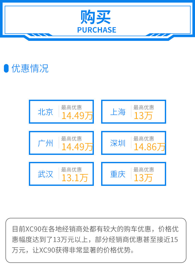 作为一款沃尔沃车型,安全配置当然是最大的亮点;在XC90车系,交通标识识别、疲劳驾驶提示、车道偏离预警、主动刹车等热门安全配置均为全系标配,而这台次顶配车型更增加了倒车车侧预警、并线辅助等功能,为日常驾驶提供了很高的主被动安全保障。