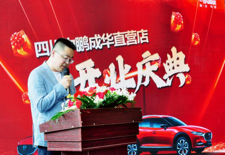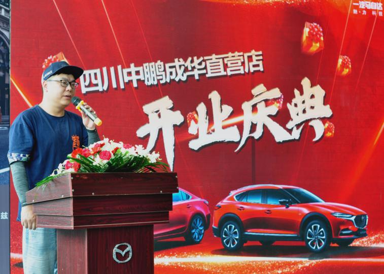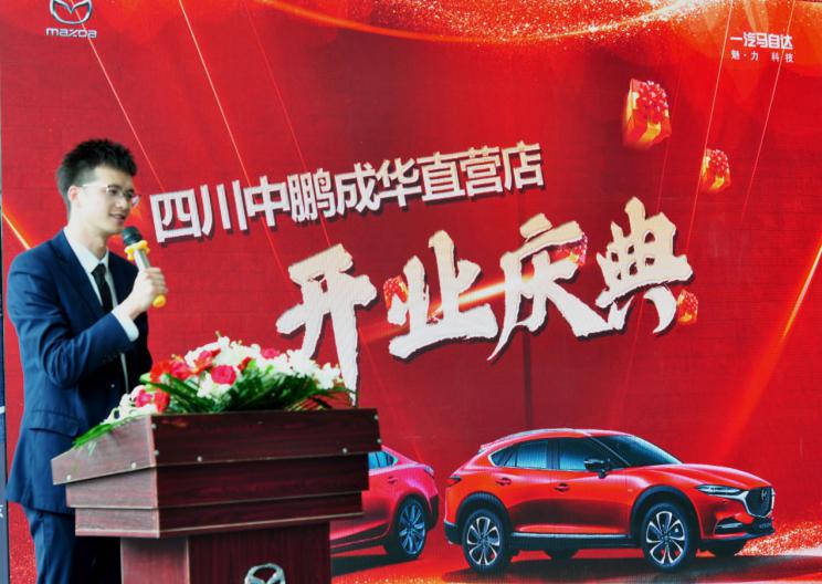 四川中鹏马自达总经理为新店致辞,所有直营店按照4S店的标准运营,让客户放心购车,安心用车!