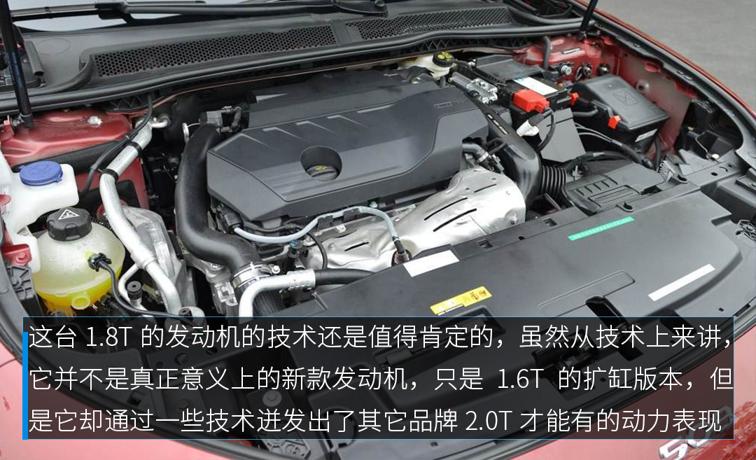 最值得肯定的那就是它1.8T车型上的这台发动机了,使用铝合金缸盖和缸体的1.8T发动机,比1.6T版本的主贴发动机重量轻了21%。而它的双涡管涡轮则是为它增加了7-8%的进气效率,再加上其压力高达200Bar的高压缸内直喷技术以及一些其他的增量技术,让它有了155kW的最大功率,峰值扭矩也高达300N•m;这一动力表现已经和主流2.0T发动机站在同一条水平线上,但其依旧保持了较高燃油经济性,这就很难得了。