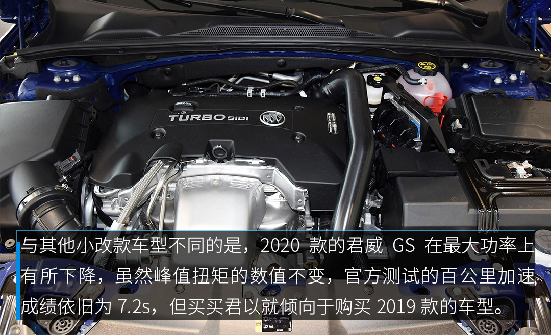 说到升功率,也不能少了通用这位选手。别克君威身上那台2.0T的表现也可圈可点。不过需要注意的是并不是最新的2020款君威GS身上那台,而是2019款君威GS身上那台。还需要知道的是,作为中型车的君威GS官方给出的百公里加速为7.2s,实测却是让人惊喜的6.2s。
