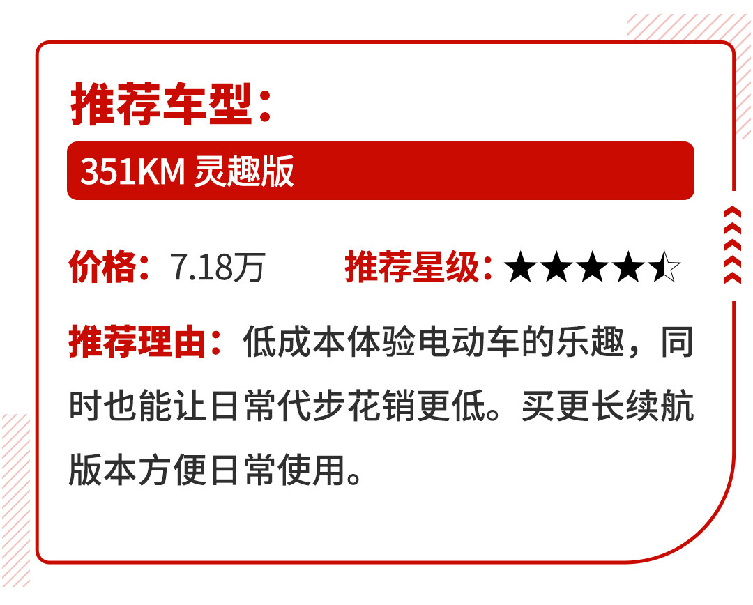 其指导价为6.98-7.98万,目前终端售价上还有下探空间,入门版车型其价格可能仅需5万多。如果你有进行日常充电的条件,欧拉R1的确是一款不错的代步车型。