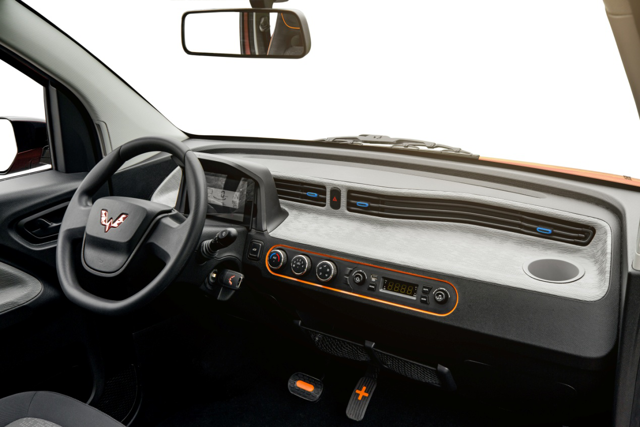此外,宏光MINI电动车还采用了主副驾贯通式一体化出风口、摆放式仪表台设计,诸多别出心裁的设计彰显了这款小神车的周到贴心。
