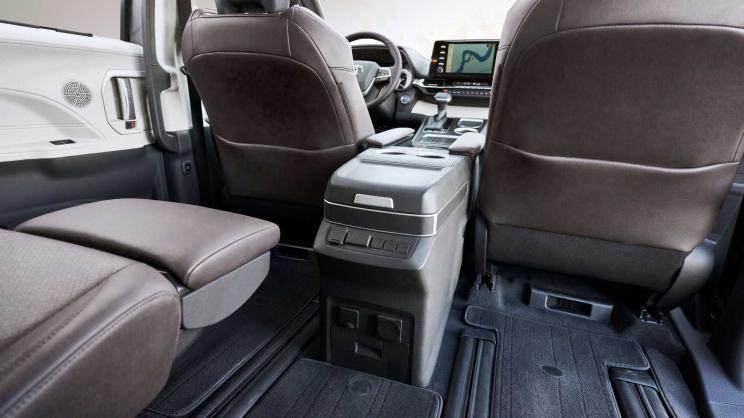 内饰方面,全新一代Sienna所展现的质感相比以往可谓是翻天覆地的转变,从颜色、材质,甚至是线条的搭配上,都将烘托出新车的内饰层次感。从中控台一直往下延申的当把区域,其木纹装饰板设计也颇显高级。