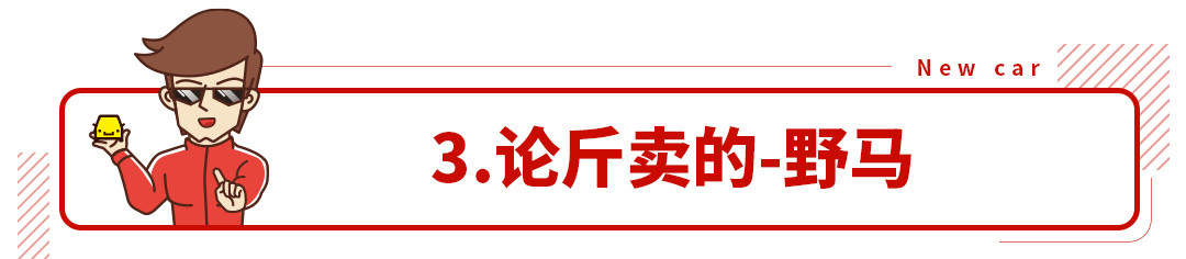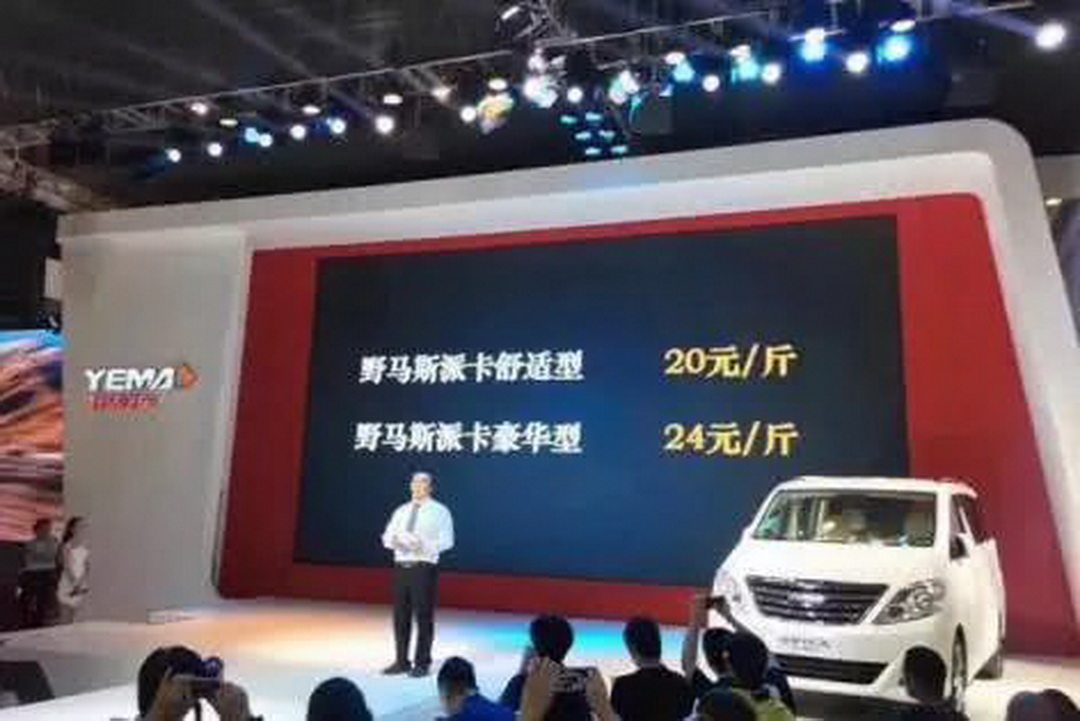 在2017年的成都车展上,野马玩起了论斤卖的营销手法,又一次博得了关注。川汽野马在它的MPV斯派卡价格公布会上,用简单粗暴的两行字标明价格:舒适型售价20元/斤,豪华型售价24元/斤。新奇的营销手法让野马顺便火遍全网,好事者还算了一下自己的车多少钱一斤。