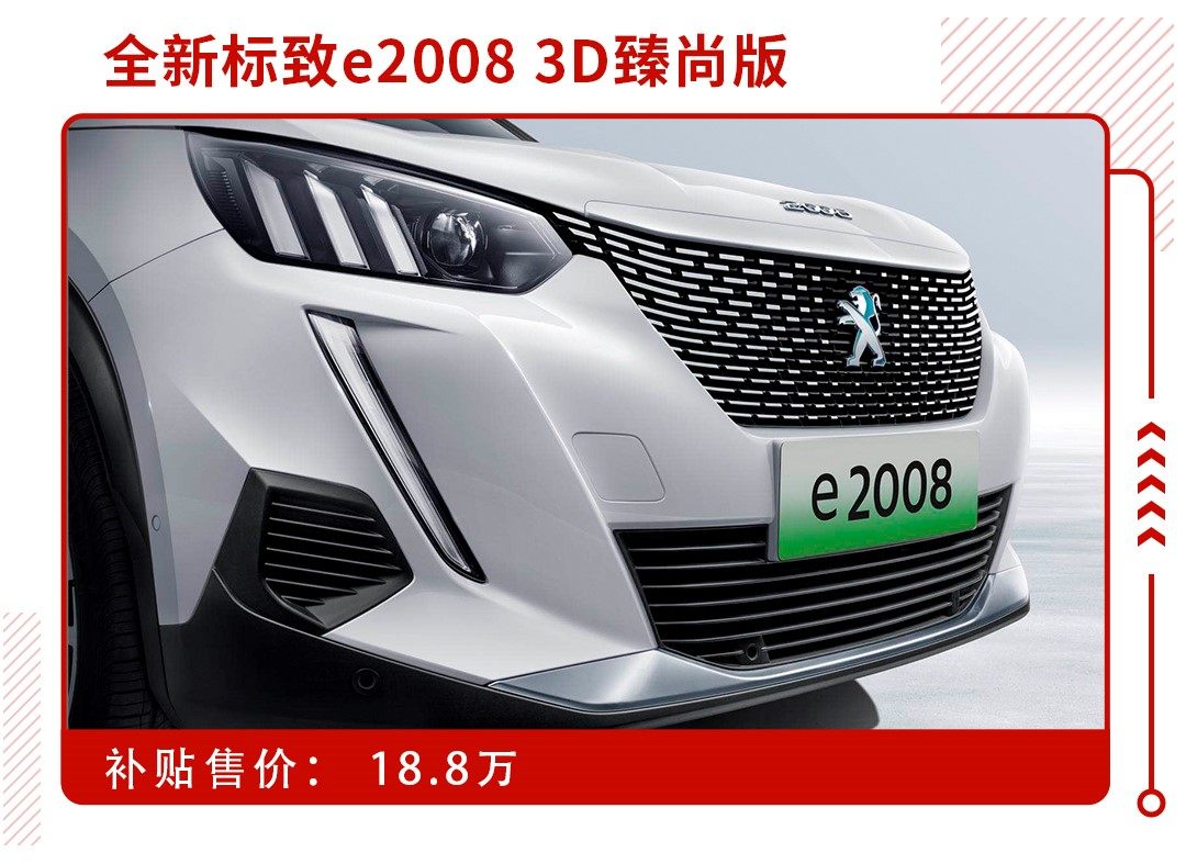其次,标致并没有对纯电版e2008的外观进行刻意改造,整体设计基本与燃油版一致,甚至还保留了 “进气格栅”,而最大的区别就是在车身增加的纯电版专属标识。