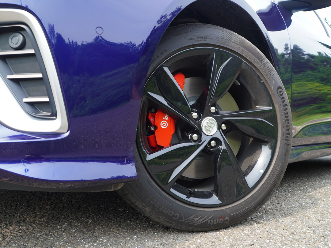 从第一眼看到君威GS,轮上的那套原装的18寸的熏黑轮毂搭配红色Brembo四活塞刹车卡钳,尤其引人注目,加上前脸中网红色“GS”的徽标,能很好地判断它的身份和定位。开上君威GS,那套红色Brembo的刹车卡钳,绝对能让你成为这条gai上最靓的仔。