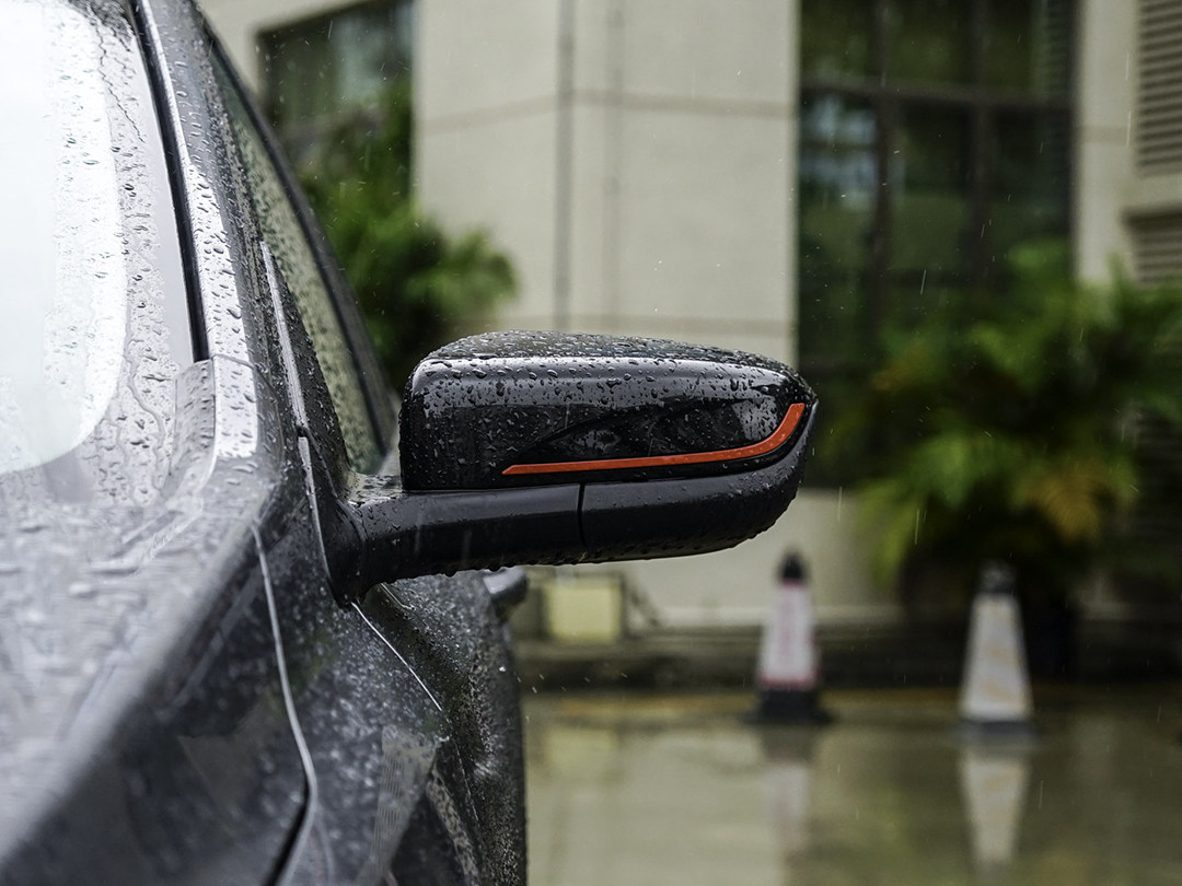 科沃兹的动感时尚首先体现在外观上,进气格栅、轮毂、后视镜等各处都加入了灵感源自高转区域的红线设计元素。在外观主体色调为深黑的背景下,Redline元素点缀其中,红色的刹车卡钳、尾翼以及前脸后视镜上,红线廖廖几笔,却又令人印象深刻。再加上科沃兹A0级别的身材,整体看上去,科沃兹给人的观感十分动感。