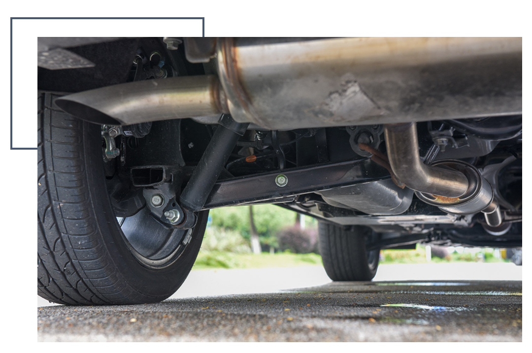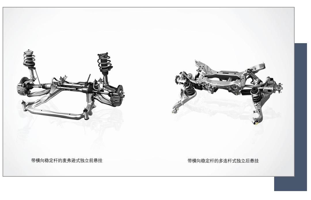 在逍客的底盘前部,配备了只有豪华品牌才有的全框式副车架。全框式副车架相比我们常见的元宝梁式副车架有什么优势?遇到碰撞时,全框式副车架好比额外的碰撞力传递路径,起到了吸能导向的作用。又因为全框式副车架能够增加车身侧向刚性,于是转弯时悬架的变形量很小,一定程度提高了操控性能。又由于悬架连接在副车架上,副车架又通过衬套连接在车身上,于是震动被一级一级吸收,舒适性也会有所提升。