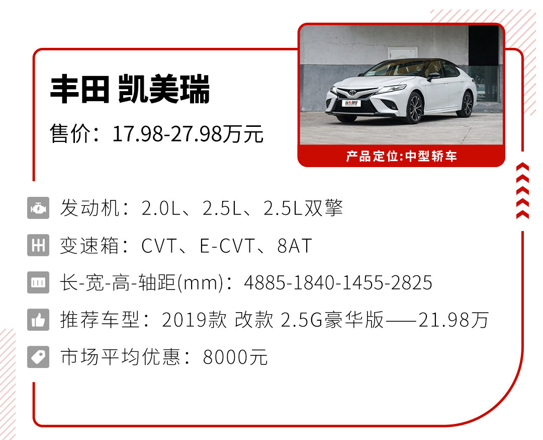凯美瑞的热销几乎有目共睹,火了十几年依旧受到大家的青睐,放到现在,它依旧是主流合资B级车里的大头之一。