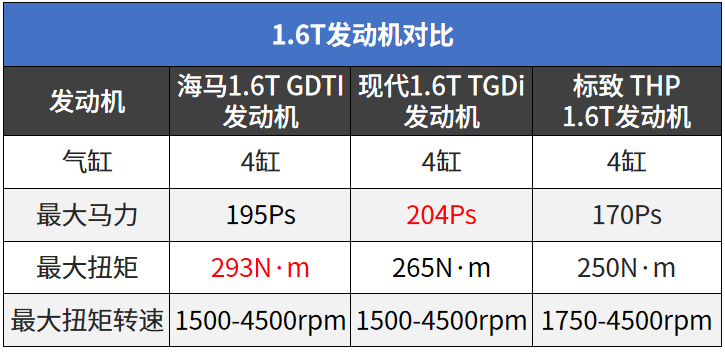 在聊海马这款发动机之前,先看看市面常见的1.6T发动机之间的对比: