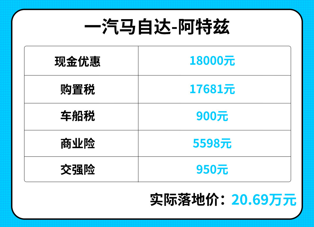 看回购车方面,从销售方面咨询到,目前阿特兹全系有着1.8万的现金优惠,以2.5L蓝天运动版为例,优惠后车辆的裸车价仅18.18万。加上税费和保险费用车辆落地价位20.69万,相较19.98万的官方定价仅高出0.71万,落地价与指导价基本处于持平的状态。而且比较值得一提的是马自达在国内大多数地区的优惠都十分统一,目前大部分地区均有1.8万的现金优惠。
