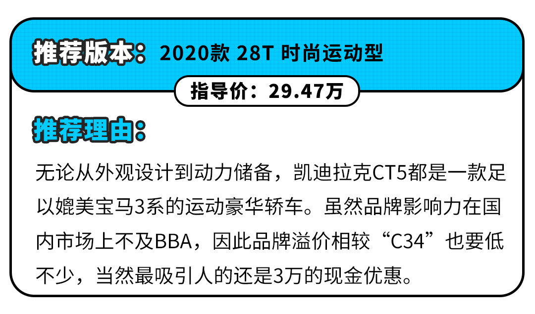 凯迪拉克CT5在上市初期曾在市场上挂起过一阵讨论热潮,作为ATS-L的继任者,凯迪拉克CT5都继承了车型的众多优点,例如动力强劲的2.0T发动机、前置后驱的布局以及足够具有辨识度和运动感的外观设计。如果对3系的烂大街感到乏味,那么作为3系强有力的竞争对手,凯迪拉克CT5是一款不容错过的选择。