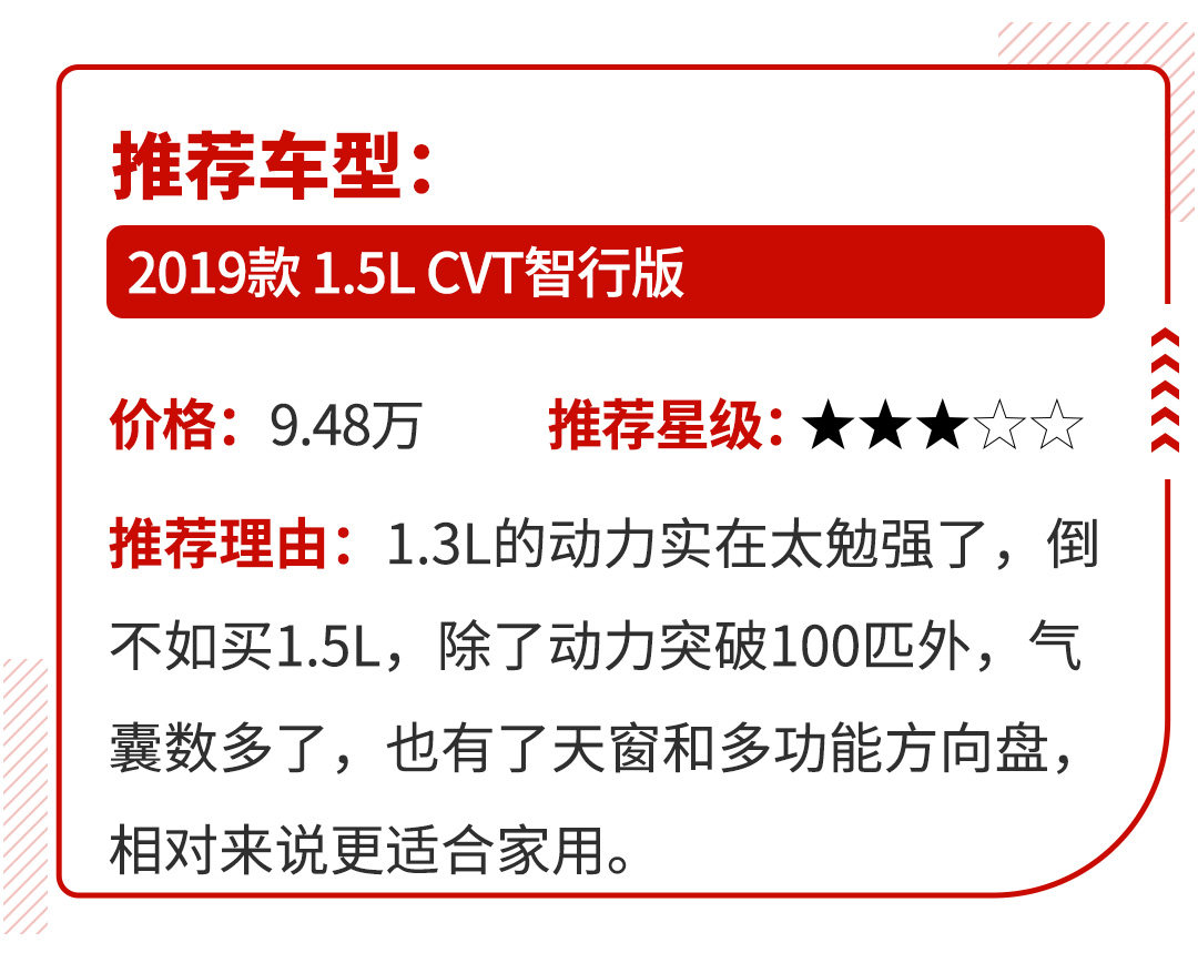 如果你是个挑剔的人,上面两辆车肯定不对你的胃口,除了动力弱、内饰简洁外,这两车也是老平台的产物,难免让人介意。倒不如选择一些平台新一点、动力强一点、空间大一点的车,仅有的牺牲就是这些车的油耗可能没有前面好,但相差并不大。