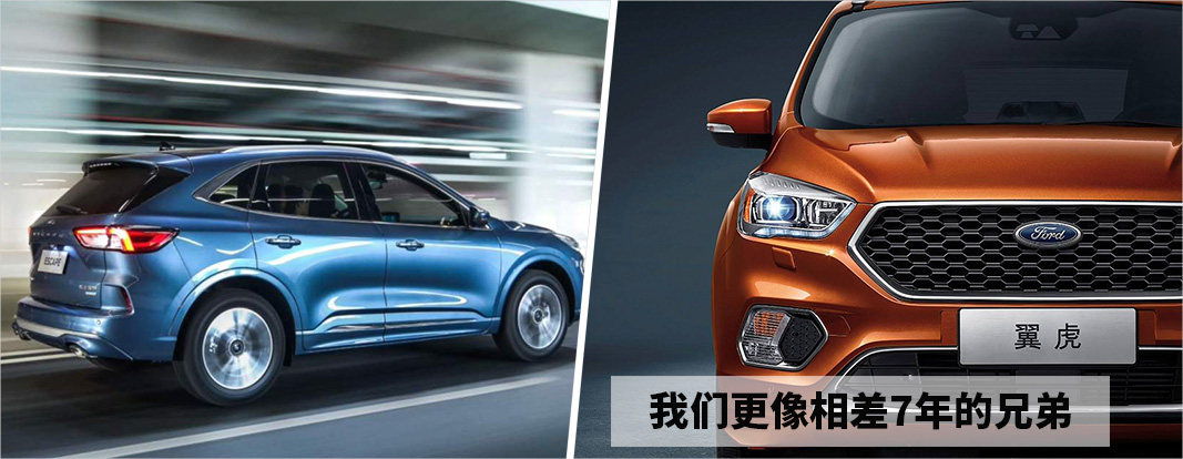 福特翼虎在2013年便已登陆国内市场了,而锐际是去年年底才上市的新车,作为同一定位的SUV车型,7年后推出的锐际严格意义上算是翼虎的换代车型。翼虎在外观设计上要更偏向于务实和传统,而锐际则更年轻和运动,两车本身就存在差异化的设计。