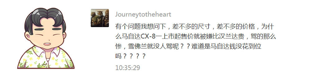 最后,在做工、隔音上的表现,也是马自达的一大劣势。总的来说,购买马自达的消费者,图的就是它的驾控体验,而这在CX-8上你是体验不到的。同样的价位上,汉兰达的综合表现相比于CX-8要高出不少,这也能怪汉兰达能成为标杆,CX-8却销量惨淡。
