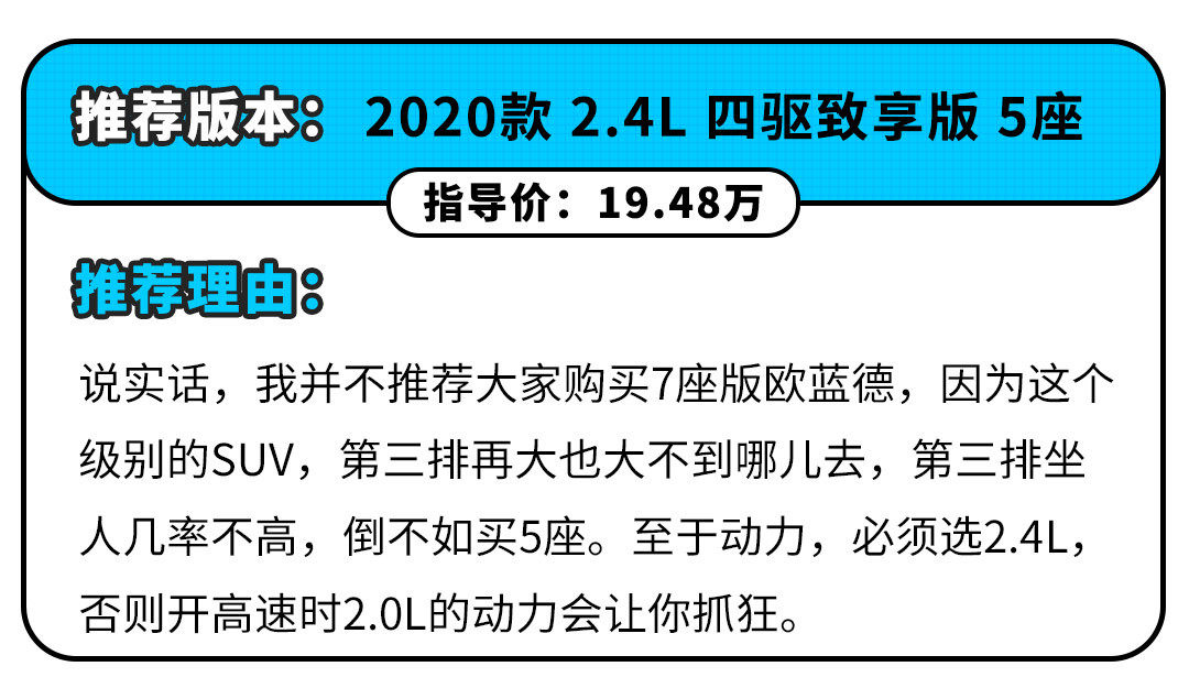 实话实说,欧蓝德在总体售价上还是要低于本田CR-V、丰田RAV4等对手,且尺寸更大并主打7座,性价比不错。因此你若对绝对大的空间有刚性需求,并不在意其人机工程学较差的乘坐感受,那欧蓝德在当下还是一款很值得入手的车。但是,如果你并不追求座位数,并且十分看重舒适的乘坐感受,那我劝你就不要买欧蓝德了。