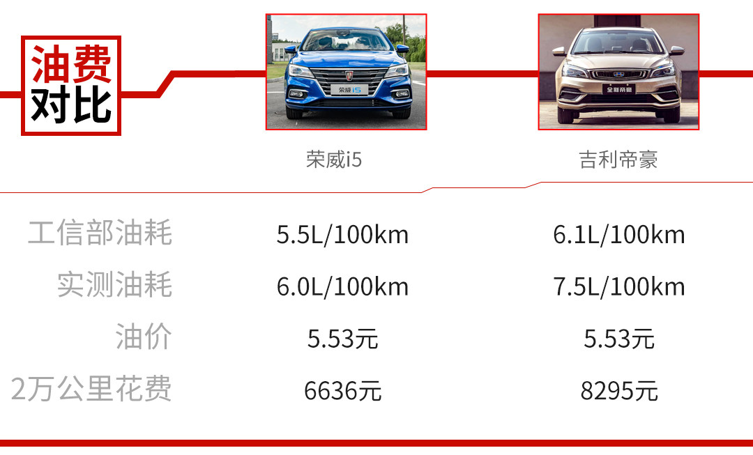 假如一年跑2万公里,荣威i5和吉利帝豪每年油耗的花费将会拉开1千多元的差距,作为一辆紧凑型家轿来说,吉利帝豪这么高的油耗难以说得过去,对于年轻消费者来说,容易加重养车负担。