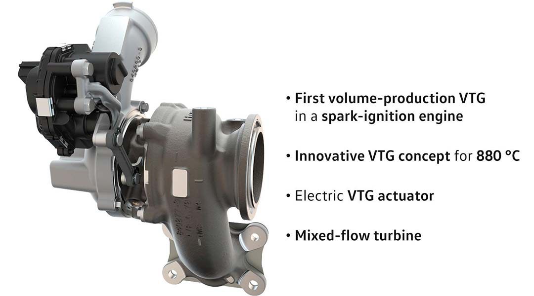 VTG核心是可调涡流截面的导流叶片,通过改变排气入口的横切面积改变涡轮的特性,该技术最初搭载在保时捷911 GT2 RS车型上,可以有效减轻涡轮增压器的迟滞现象,同时可以提高发动机在低转速段的动力性。据官方介绍,VTG技术的运用可以让涡轮迟滞降低35%,这意味着涡轮可以在更低的转速介入,低速时开起来会更加轻快。