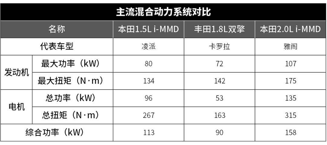 搭载在凌派锐·混动的这套1.5L i-MMD混动系统,虽然最大功率比雅阁上的那套2.0L i-MMD混动系统要低,但相比卡罗拉的1.8L双擎,还是要高不少,所以开起来动力会更充沛一些。
