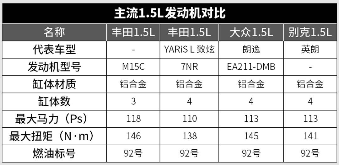 而与主流的1.5L发动机相比,丰田的TNGA 1.5L发动机虽然只是款3缸机,但动力和扭矩都是最大的,如果对抖动和噪音能够有效控制,那么新款发动机还是值得期待。