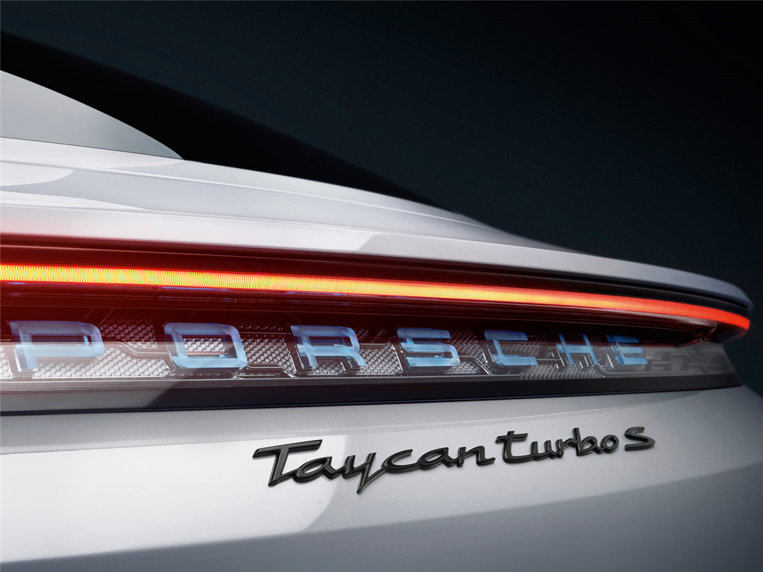 车尾最大的亮点无疑是玻璃材质的贯穿式尾灯,以及三维立体式的玻璃“Porsche”字样,质感很好。